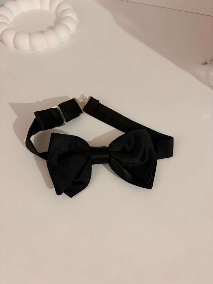 Klasik siyah erkek papyon, desen içermeyen düz tasarımı ve ayarlanabilir kayışıyla şık ve rahat bir kullanım sunar.