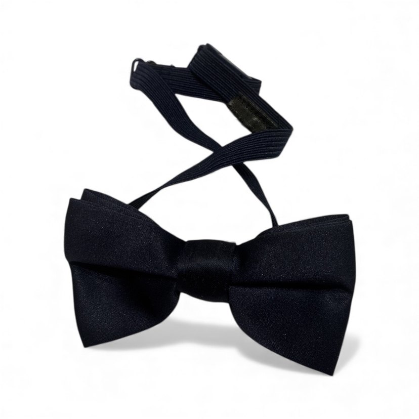 Klasik siyah erkek papyon, düz ve desensiz tasarımı ile ayarlanabilir bantlıdır, şık veya gotik tarzlar için uygundur.