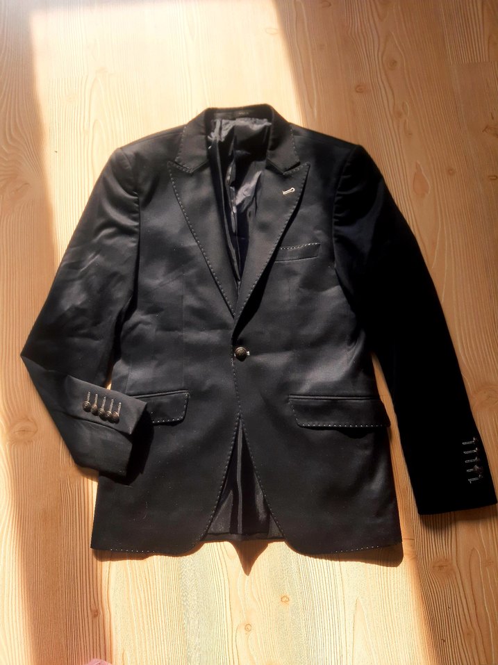 Klasik siyah erkek takım ceketi, düğmeli ve normal kesimdir. Uzun kollu, ofis için modern klasik stilde tasarlanmıştır. ️