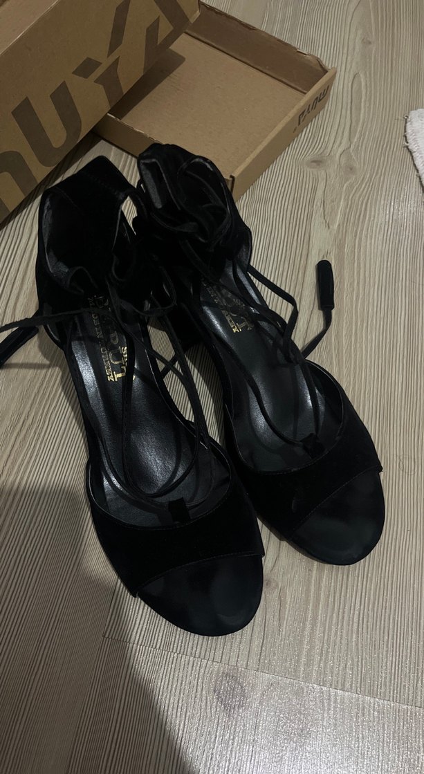 Klasik şıklıkta, lastik malzemeden yapılmış, tokalı siyah gotik blok topuklu akşam ayakkabısı, romantik akşamlar için uygun.
