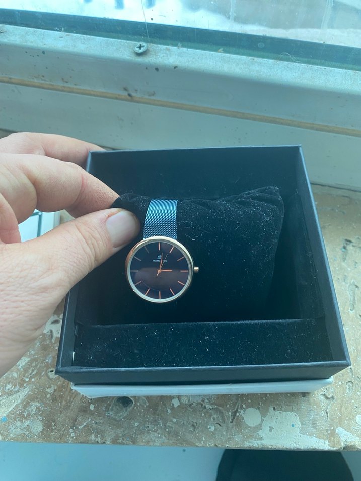 Siyah renkte, tokalı kayışa sahip kadın kol saati. Modern klasik tasarımı ve koyu tonlarıyla iş ortamına uygun klasik zarafeti yansıtıyor. ⌚