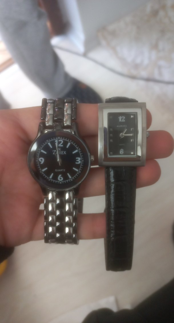 Klasik tasarımlı siyah kadın saatleri, biri metal zincirli diğeri dokulu deri kayışlı, koyu tonlarda ve tokalıdır. ⌚siyah deri kayisli satildi