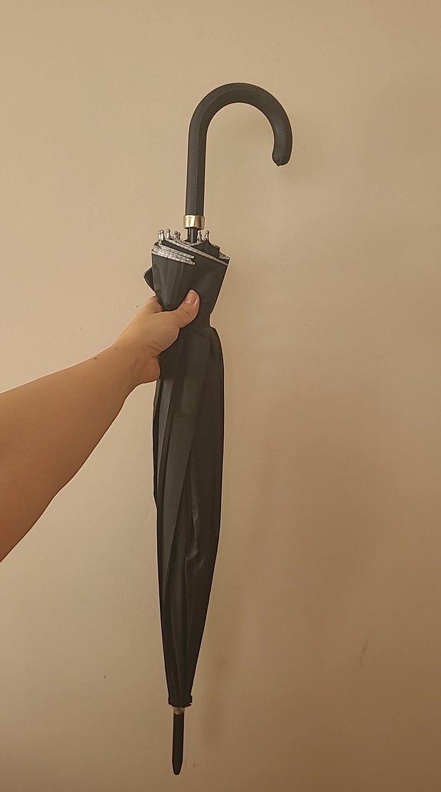 Klasik kıvrık saplı siyah kadın şemsiye, minimalist ve gotik tarzı yansıtan yırtmaç detayına sahiptir. ☂️