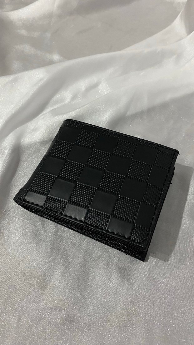Koyu siyah kareli desenli erkek cüzdanı, klasik zarafet ve Paris sokak modasını yansıtan şık bir tasarıma sahiptir.
