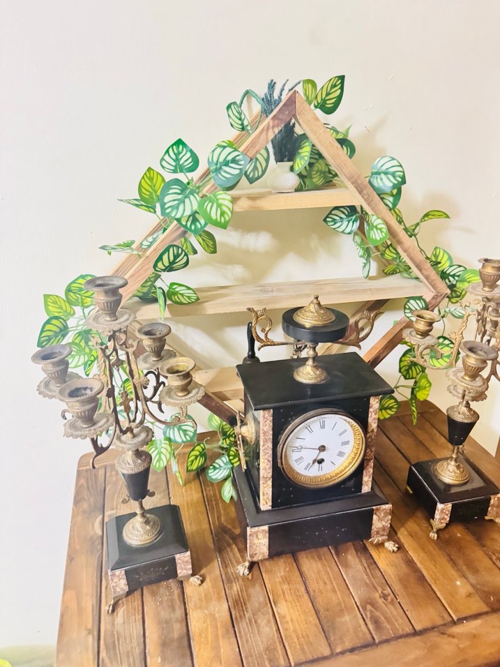Klasik Siyah Masa Saati ve Şamdan Seti