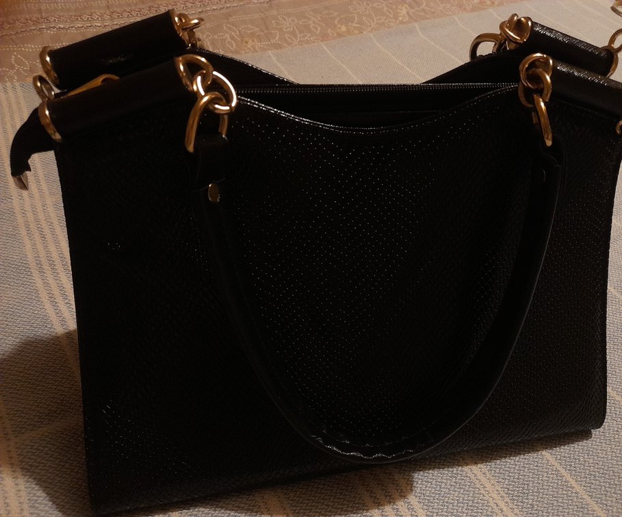 Bu siyah deri çanta, parlak yılan deseni ve tokalı detayıyla klasik zarafet ve gotik stili bir araya getiriyor. Günlük kullanım için uygundur.