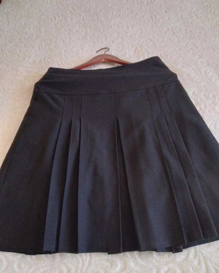 Siyah renk, pilili midi uzunlukta Sentetik kumaştan üretilmiş, klasik gotik tarzda ve ofis kullanımı için uygun.