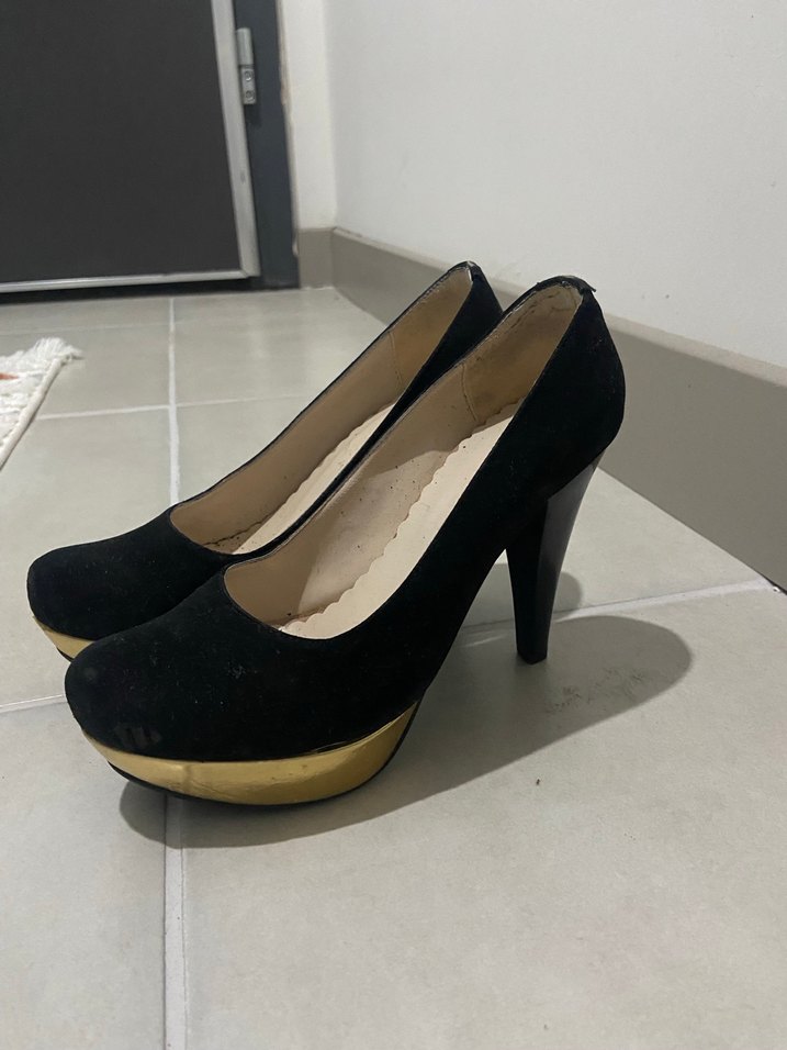 Klasik Siyah Platform Topuklu Gold Detaylı Kadın ayakkabı