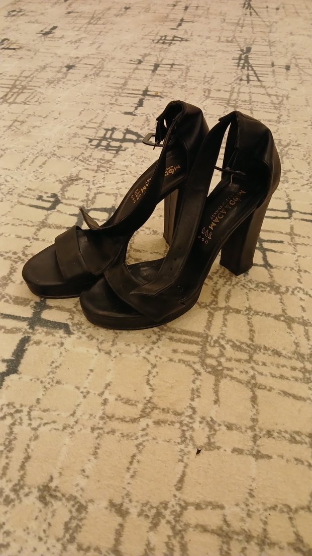 Siyah platform topuklu, tokalı kadın gece ayakkabısı. Vintage gotik tarzda, kauçuk malzemeden, romantik akşamlar için uygundur.