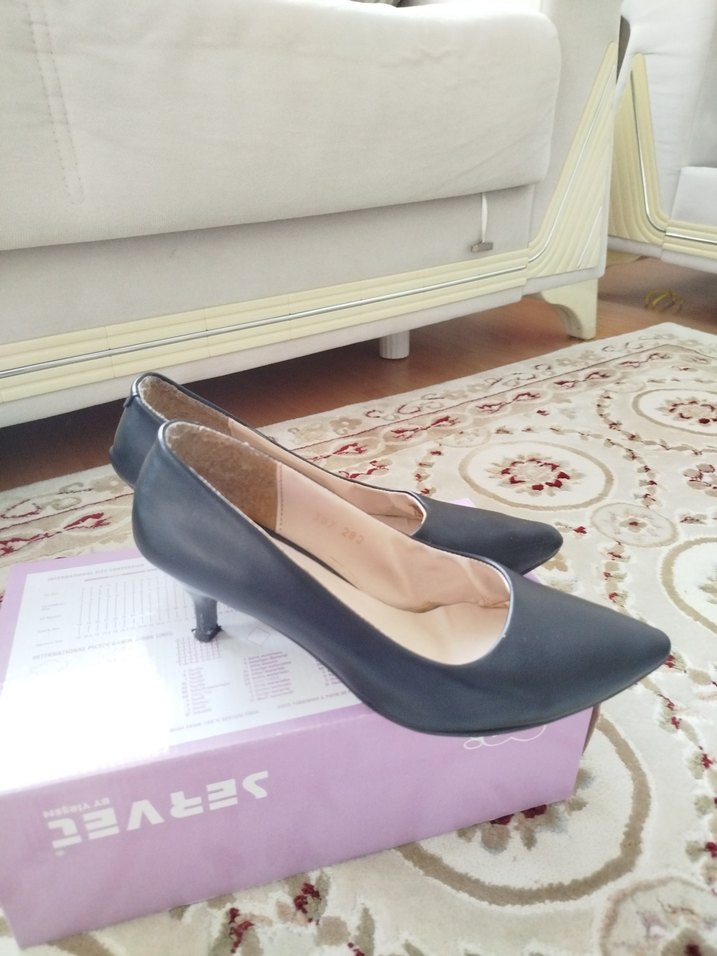 Klasik siyah renk yumurta topuk Ayakkabı