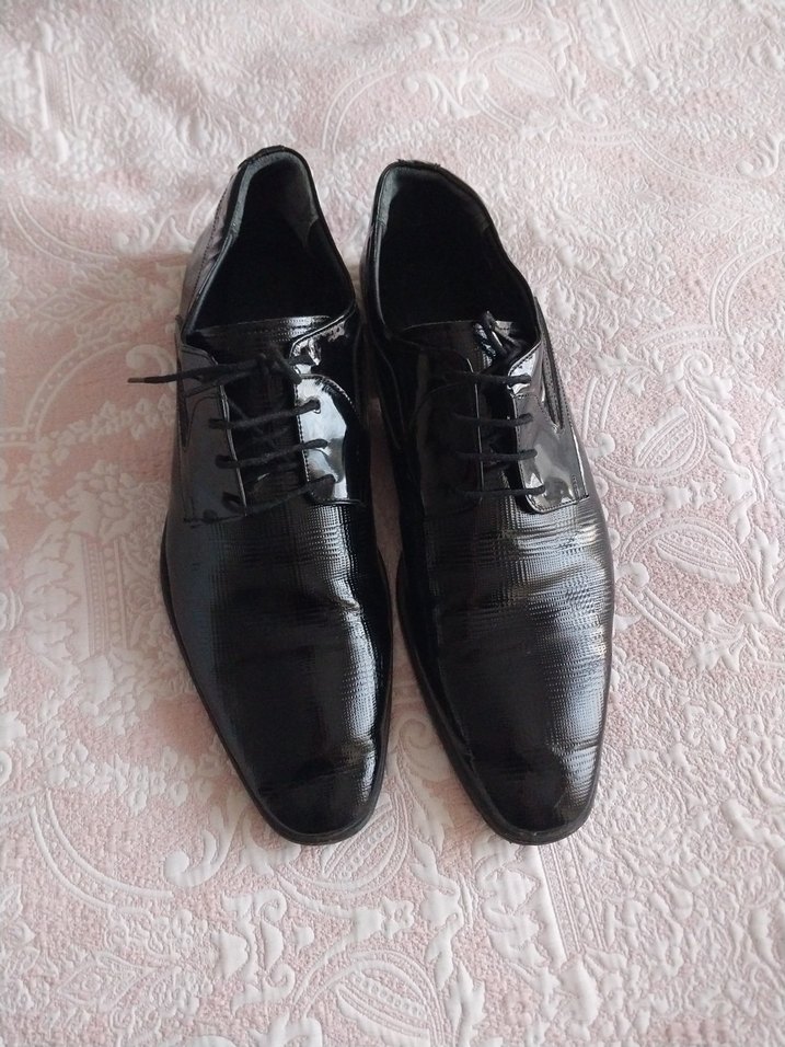 Siyah renkli, tokalı ve lastik tabanlı klasik erkek ayakkabısı. Düz ve gotik tarzda, ofis kullanımına uygun.