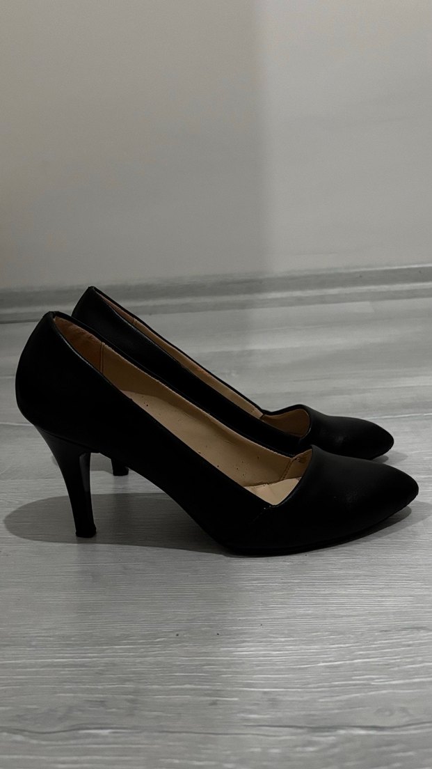 Kauçuk malzemeden, ysiyah stiletto topuklu ayakkabılar. Ofis için modern klasik tarzda, zahmetsiz şıklık ve klasik zarafet sunar. Ufak tefek defoları olabilir giyilmeye engel değildir fazlalıktan satıyorum