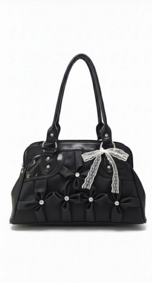 Klasik, Siyah, Taş Detaylı, Gotik, İçi Geniş Deri Vintage Çanta