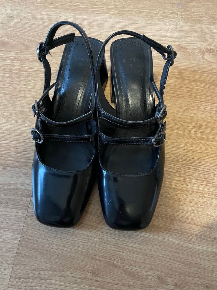Siyah tokalı blok topuklu kadın ayakkabısı, gotik stil ve klasik zarafeti birleştirir. Ofis için uygundur, kauçuk malzemeden yapılmıştır. Bir kere giyildi
