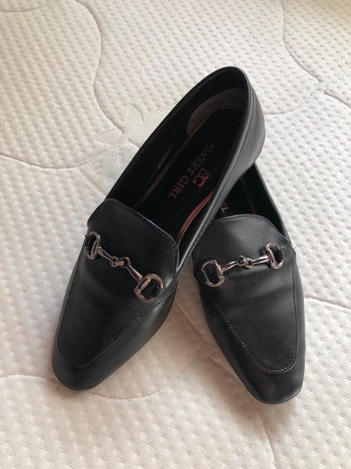 Klasik Siyah Tokalı Deri Kız Loafer