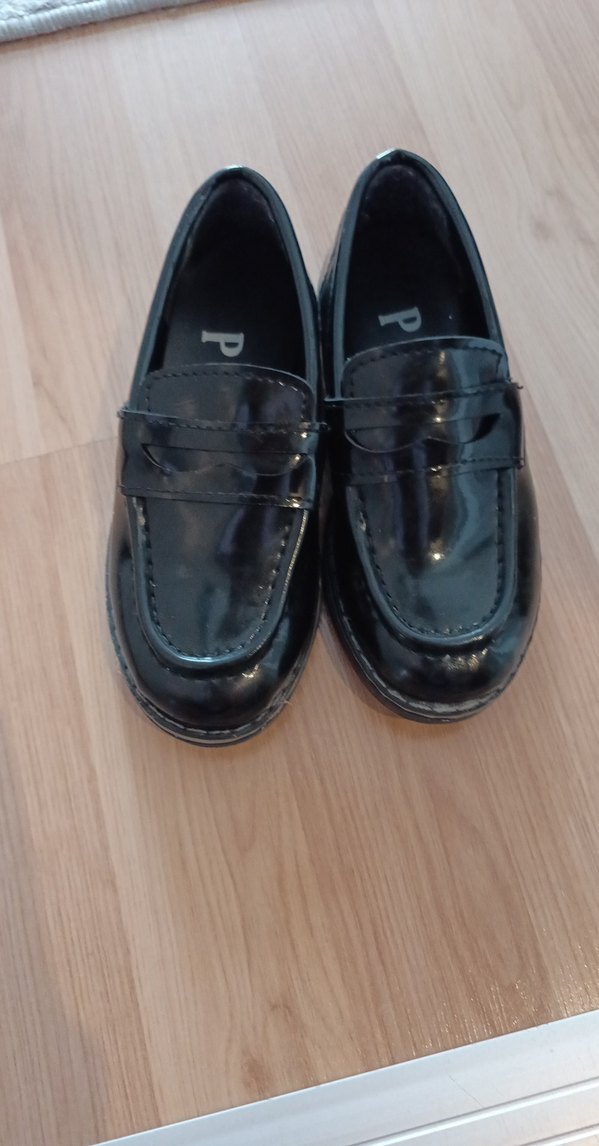 Dayanıklı kauçuk malzemeden yapılmış, tokalı ve desen içermeyen siyah erkek özel ayakkabısı, klasik gotik tarzda. sadece bir kez giyildi 1 saat oda