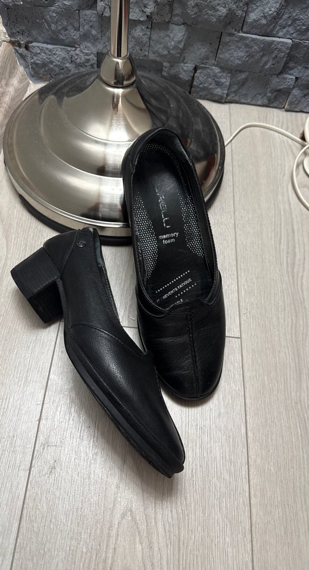 Kadınlar için tokalı, kalın topuklu, siyah klasik ofis ayakkabısı. Kauçuk malzemeden yapılmış, çağdaş ve klasik şıklık sunar. İş ortamları için uygundur.