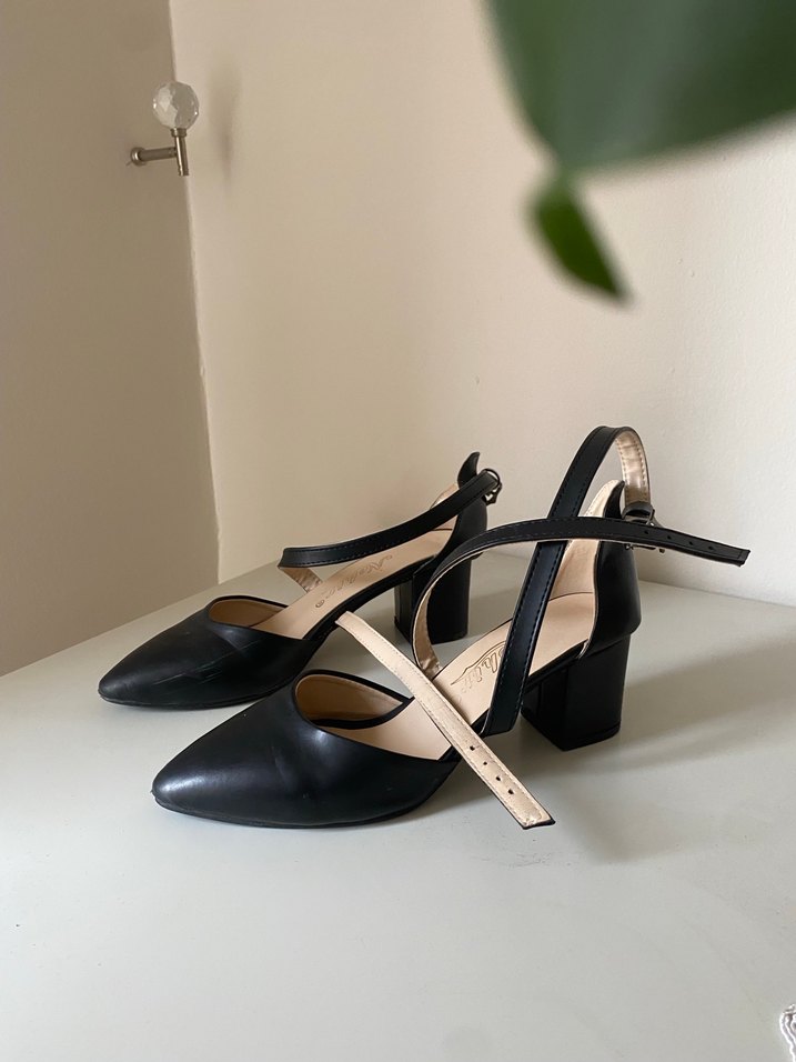 Siyah renkli, tokalı bantları ve kalın topuklu modern klasik tarzda kadın topuklu ayakkabı. Ofis kullanımı için uygun, dayanıklı kauçuk malzemeden yapılmıştır. 3-5 cm topuk boyu. marka temsili