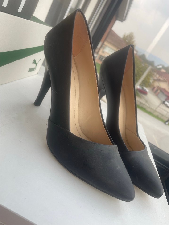 Bu siyah stiletto topuklular, tokalı detay ve kauçuk malzemesi ile modern klasik tarzda, ofis için uygundur.