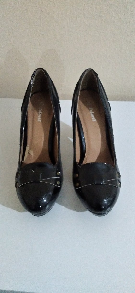 tokalı siyah stiletto topuklu ayakkabılar. Klasik gotik tarzına uygun, ofis kullanımına ideal.