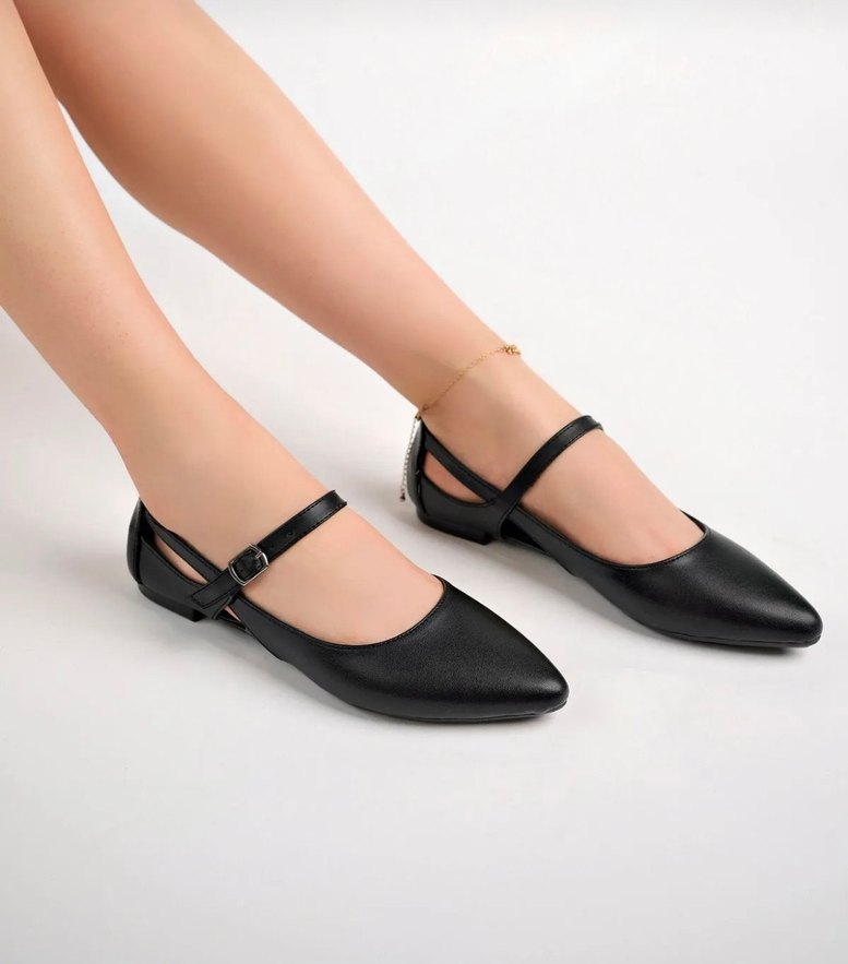 Klasik Siyah Tokalı Stiletto Topuklu Kadın Babet