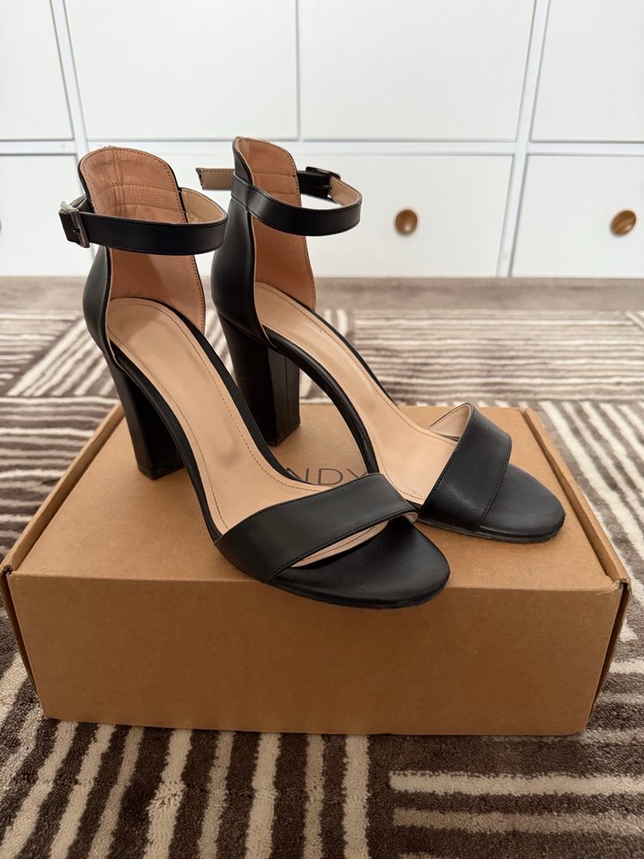 Siyah topuklu kadın ayakkabısı, tokalı bilek kayışıyla minimal ve çağdaş tasarım 2-3 kez giyildi. Herhangi bir sorunu yoktur