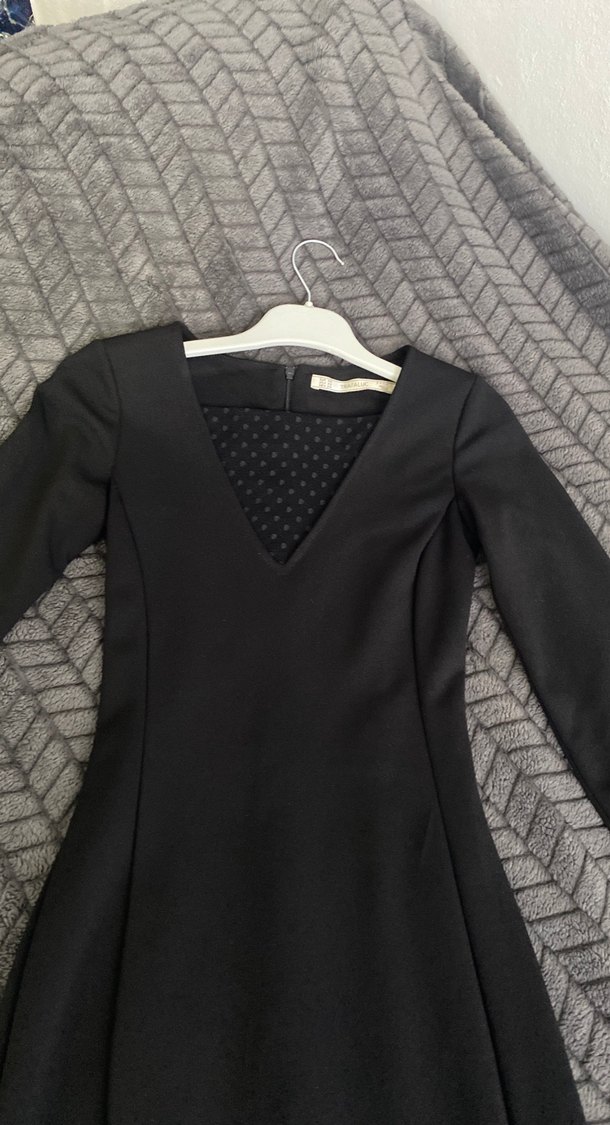 Klasik ve şık siyah uzun kollu, V yaka, drapeli kesime sahip, ofis için uygun dar kesim elbise.kalem elbise fiziği müthiş gösteriyor