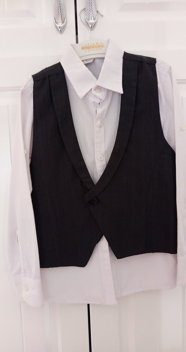 Klasik siyah yelek, düğmeli ve kesilmiş yakalıdır. Beyaz uzun kollu gömlekle tamamlanır. Rahat kesim, gotik stil için uygundur. sadece bir kere giyilde yeni gibi