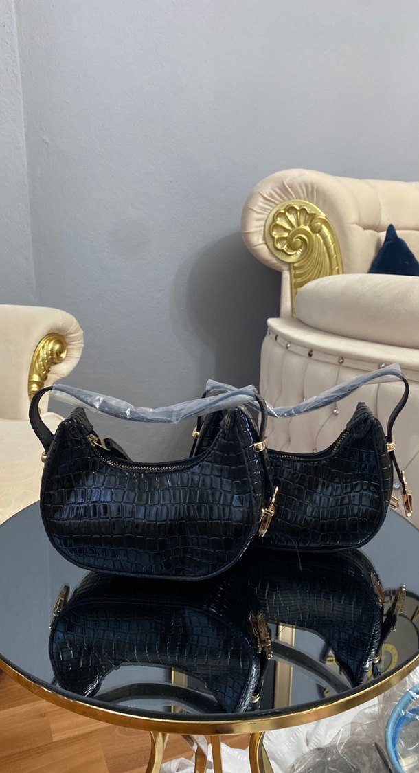 Klasik Siyah Yılan Derisi Desenli Kadın Çantası