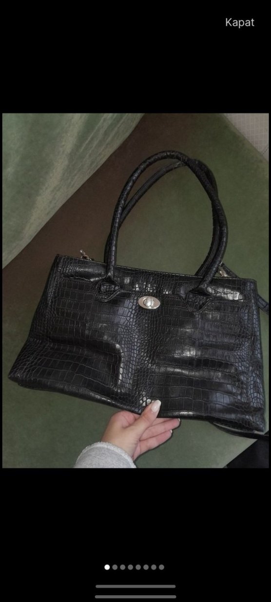 Siyah yılan desenli deri çanta, tokalı kapama ve klasik goth tarzıyla günlük kullanıma uygundur. marka temsili