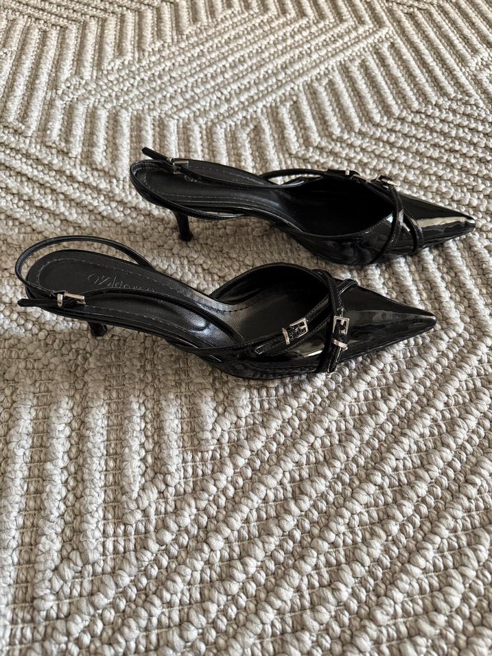 Koyu siyah yılan desenli, tokalı lastik stilettolar. Ofis için uygun, gotik ve klasik şıklık tarzında.