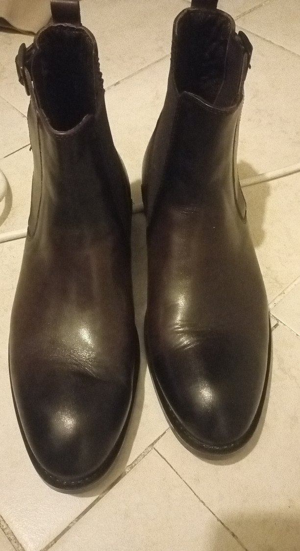 Kahverengi, tokalı erkek botları, desen içermeyen ve çağdaş bir görünüme sahip. Klasik tarz sevenler için uygun.