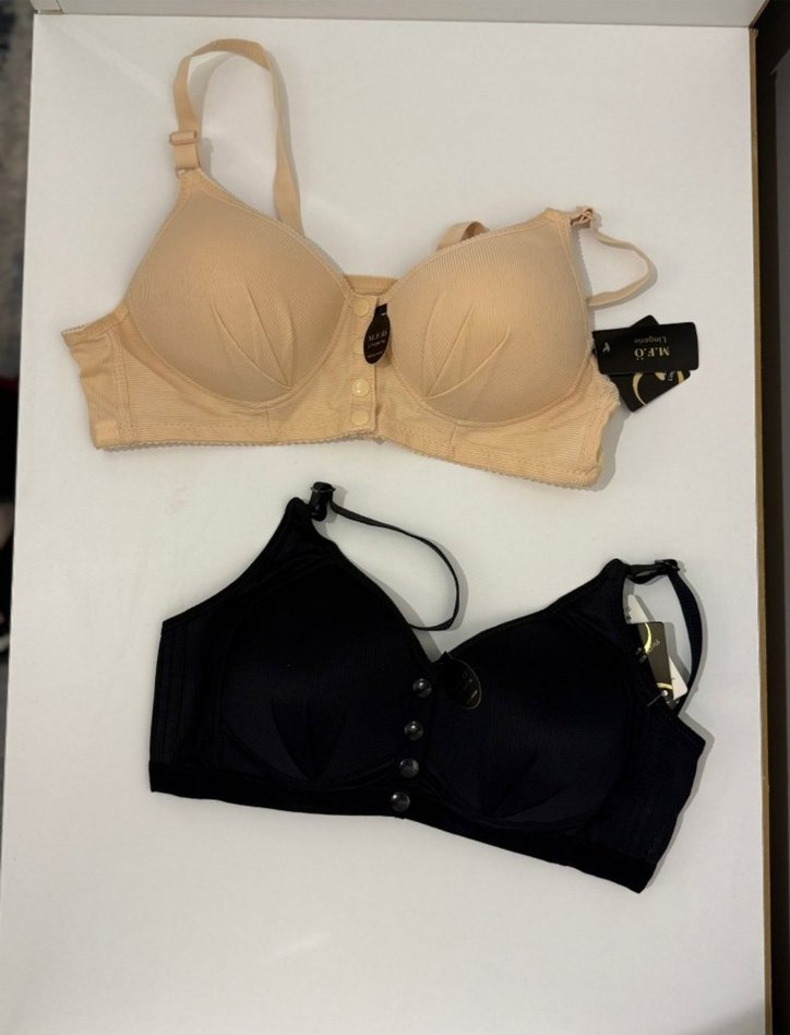 Klasik Tarz Nude ve Siyah Sütyen Seti önden düğmeli toparlayıcı