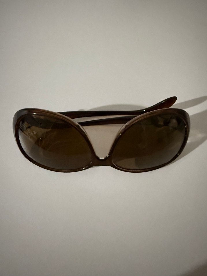 Koyu kahverengi çerçeveli, şeffaf detaylı klasik tarzda kadın güneş gözlüğü. Vintage havası taşıyan bu model, zamansız bir görünüm sunar. ️biraz yamulmuş ama kırık değil kemik malzeme optikçi den alındı optikçide yaptırılabilir kaliteli