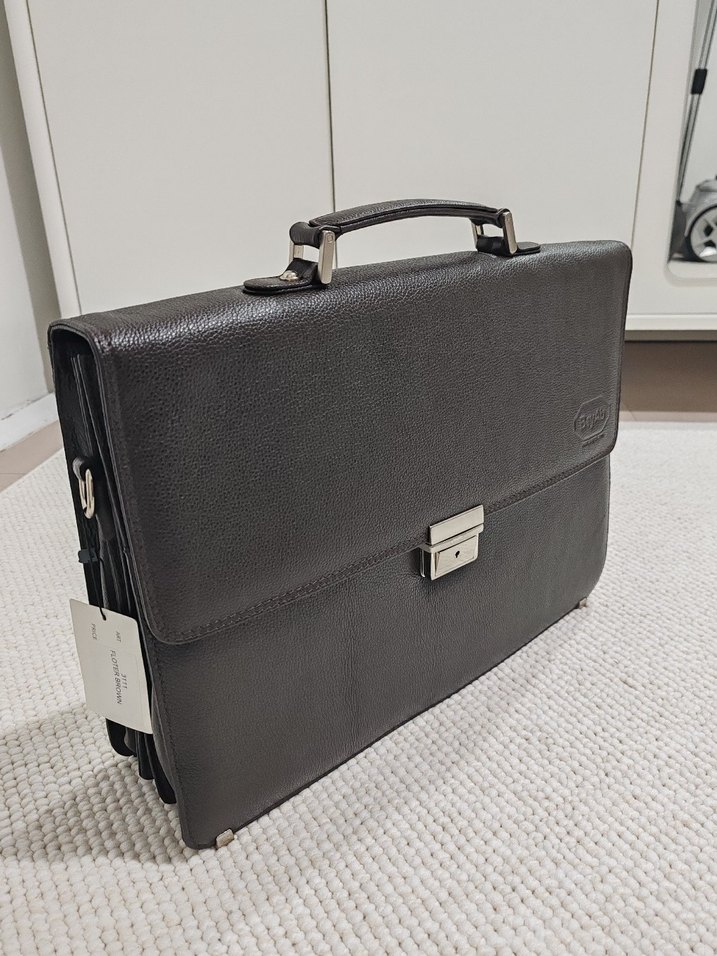 Modern klasik stile sahip, kahverengi suni deri, kilitli evrak çantası. İş kullanımı için sağlam saplıdır. Çok şık bir çantadır. Hiç kullanılmamıştır. Omuz askısı ve koruma bezide vardır. Marka temsilidir.