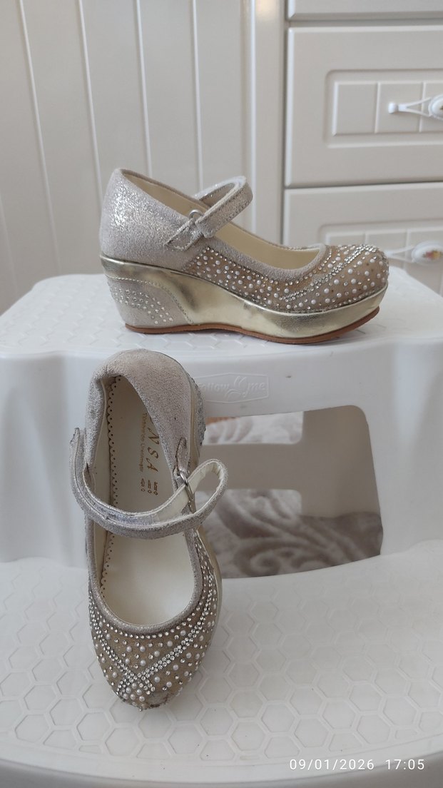 Klasik Tokalı Kız Çocuk Dolgu topuk Ayakkabı