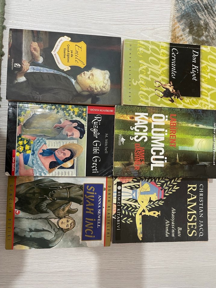 Cervantes ve Christian Jacq gibi yazarların eserlerini içeren klasik ve modern edebiyat kitapları seti.