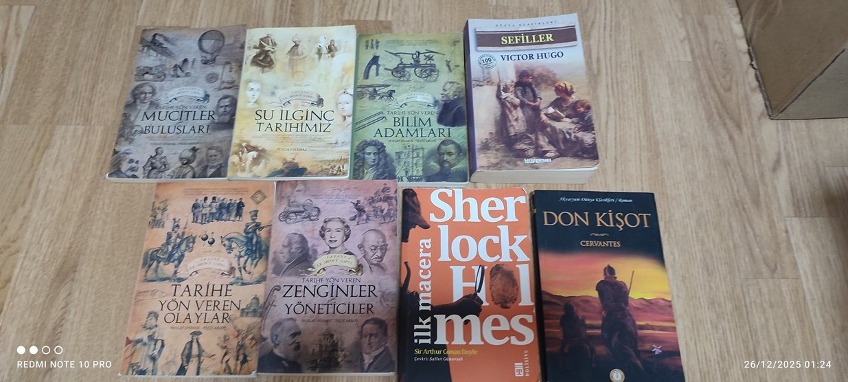 Sherlock Holmes, Sefiller ve bilim adamları gibi klasik ve tarihi edebiyat kitaplarından oluşan bir set. tertemiz