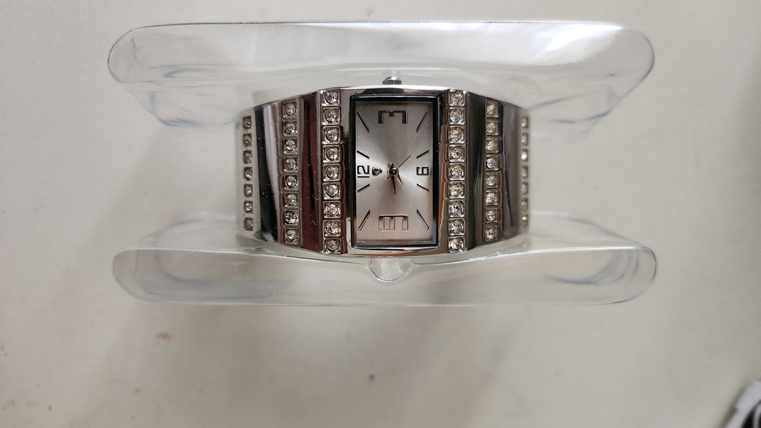Kadınlar için dikdörtgen gri kadranlı, beyaz ve gümüş tokalı bilezikte taş detaylı, çağdaş ve klasik zarafeti birleştiren saat. ⌚ pili bitik, yurt dışından alınmıştı, kendi kutusu biraz eski yinede öyle yollacaktir