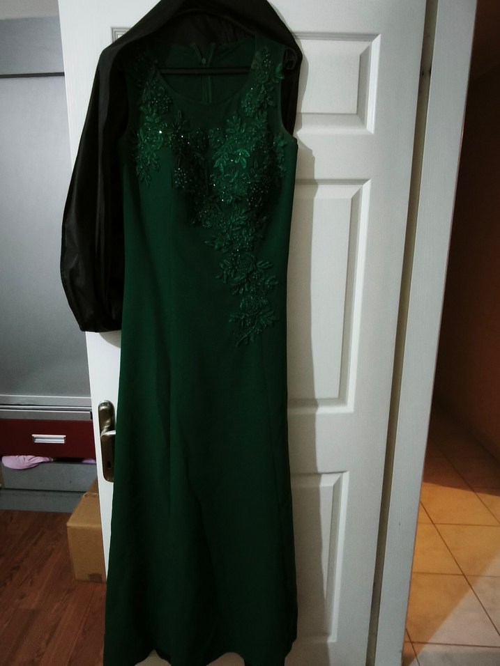Klasik Zarafet Uzun Yeşil Abiye Elbise