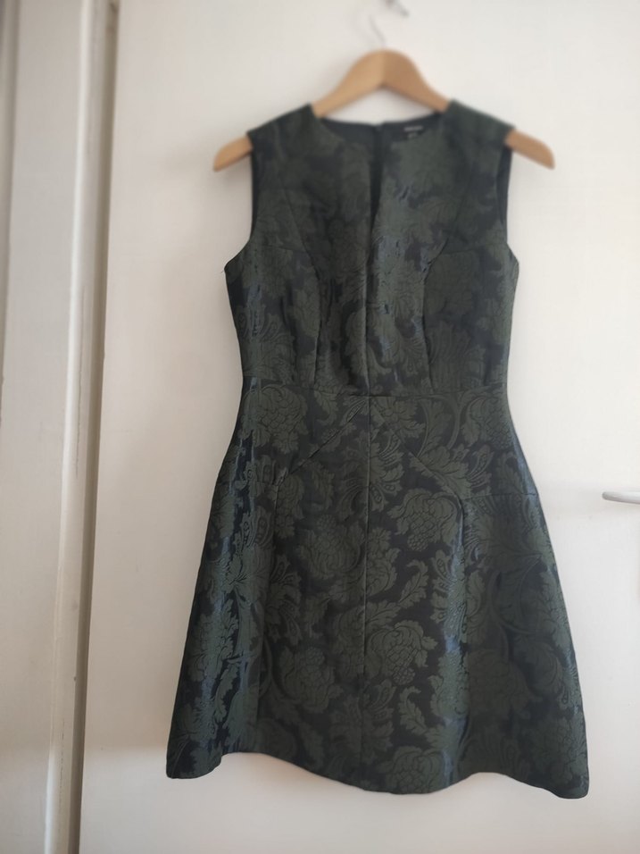 Klasik Zarif Desenli Yeşil Midi Elbise