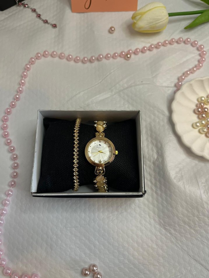 Kemer detaylı, koyu altın renkli kadın saati. Modern klasik tarzıyla Paris şıklığını yansıtan bu set, kutusunda bileklikle birlikte sunulur. ⌚