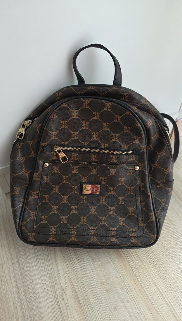Kahverengi deri, baskılı ve tokalı detaylara sahip sırt çantası, klasik zarafet ve Paris sokak modasını birleştiriyor. Günlük kullanım için uygun.