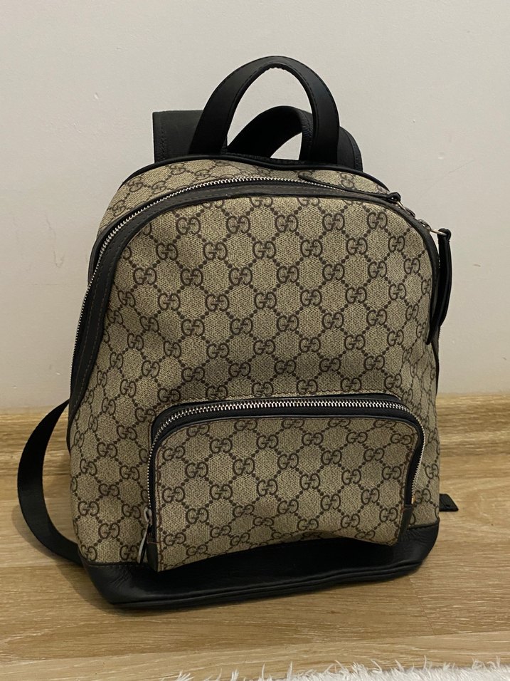 Kahverengi baskılı desenli, tokalı detaylara sahip sırt çantası, minimalist stil ile klasik zarafeti birleştirir. Fermuarlı bölmeleriyle kullanışlıdır.