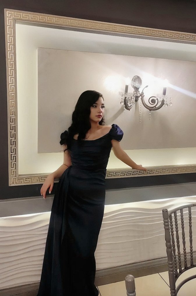 Klasik zarafet sunan, straplez yaka ve drapeli detaylı, askılı uzun lacivert elbise. Gotik düğünler için uygun. Sadece 1 kere giyildi tertemiz bir abiye