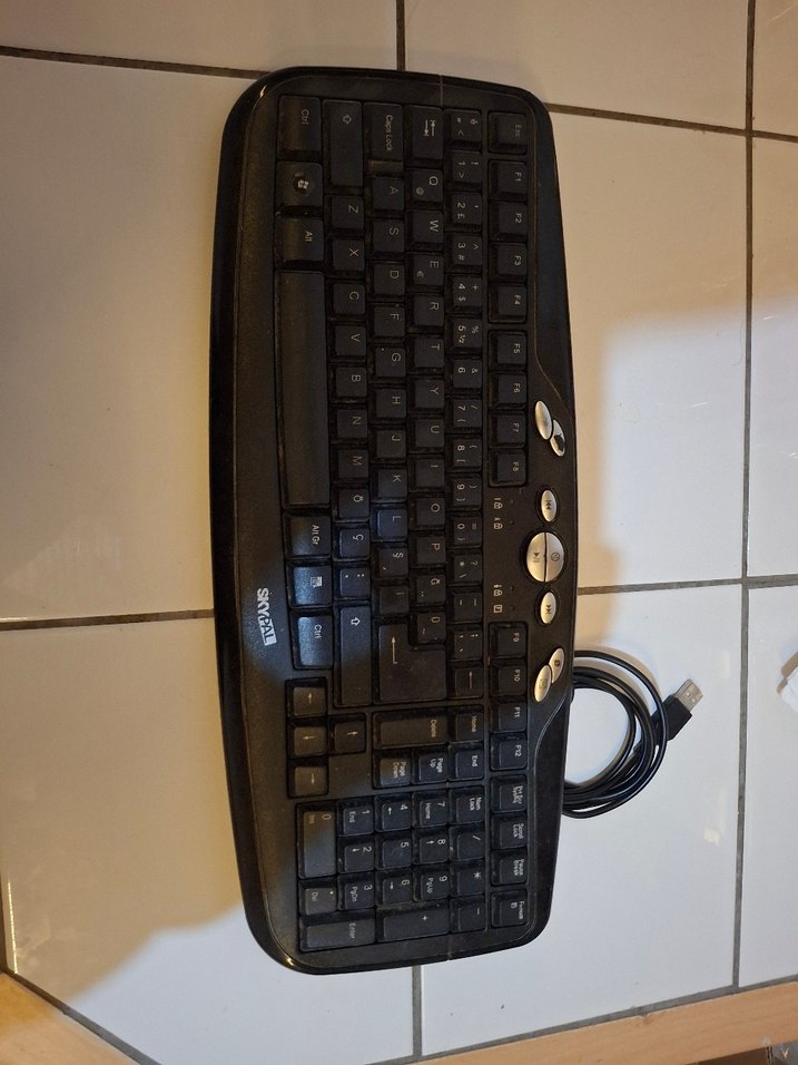 Tam tuş düzenine ve ek medya kontrol tuşlarına sahip siyah Teknos USB klavye.
