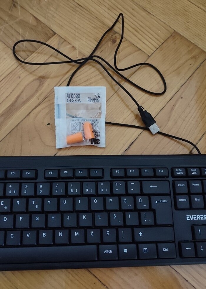 Hiç kulanmadım kendinden usb kablosu ve kulak tıkacı mevcuttur. Q klavye