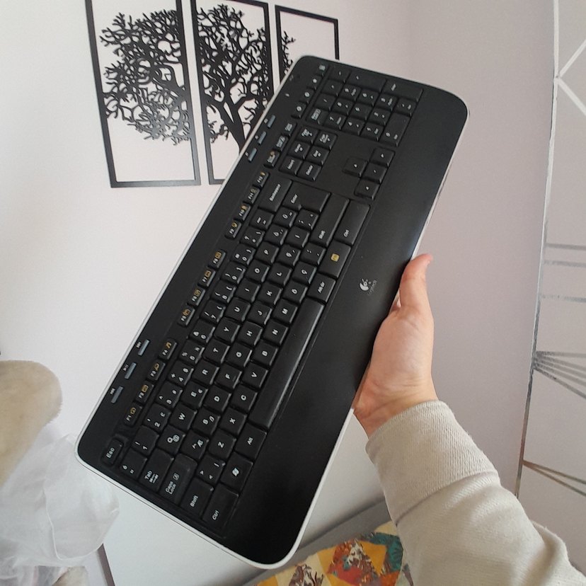 Bu siyah Logitech kablosuz klavye, sayısal tuş takımı ve multimedya tuşlarıyla tam düzen sunar. Rahat tuş aralıkları ve şık koyu tasarıma sahiptir. ⌨️ test videosu mevcut isteyene gönderebilirim 2 adet pil ile çalışır piller dahil değildir
