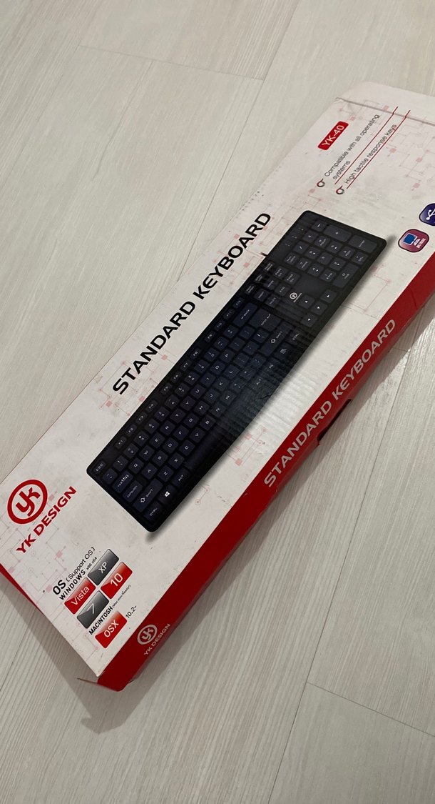 YK Design siyah standart klavye, Vista, XP, 7, 10 ve OSX işletim sistemleriyle uyumludur. Tam tuş takımı ve şık koyu tasarıma sahiptir. ⌨️
