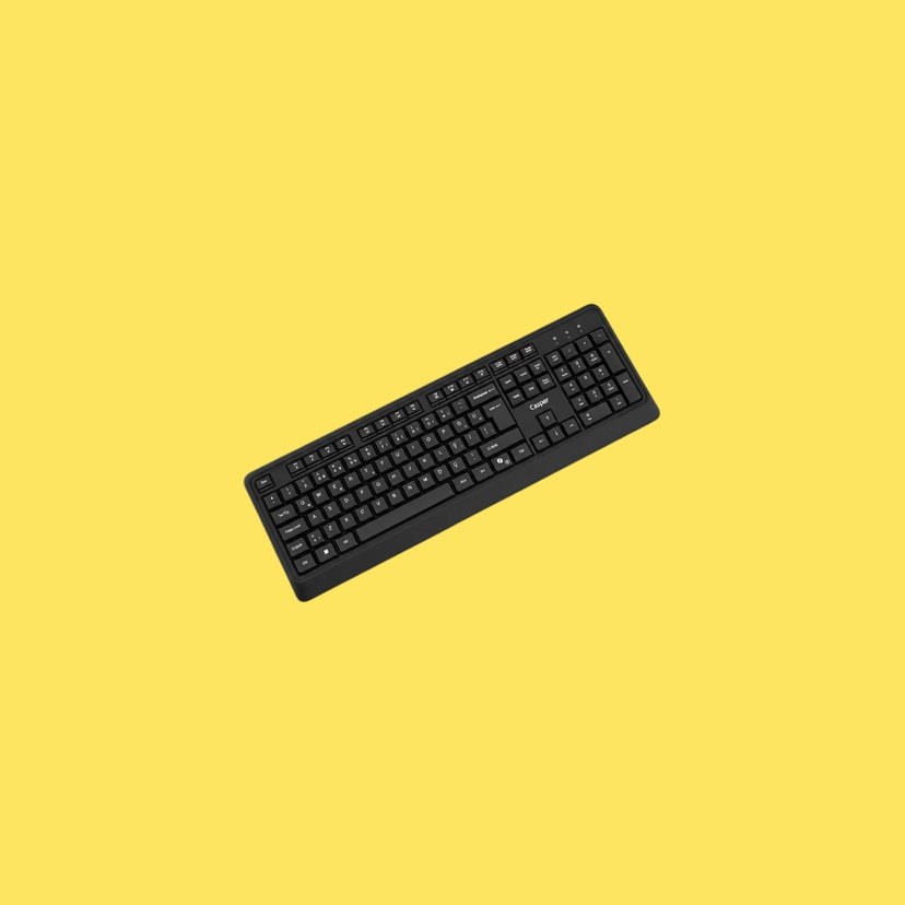 Sarı arka planda, koyu renk tuşlara sahip kablolu standart klavye. Verimli yazım ve genel kullanım için uygundur. ⌨️